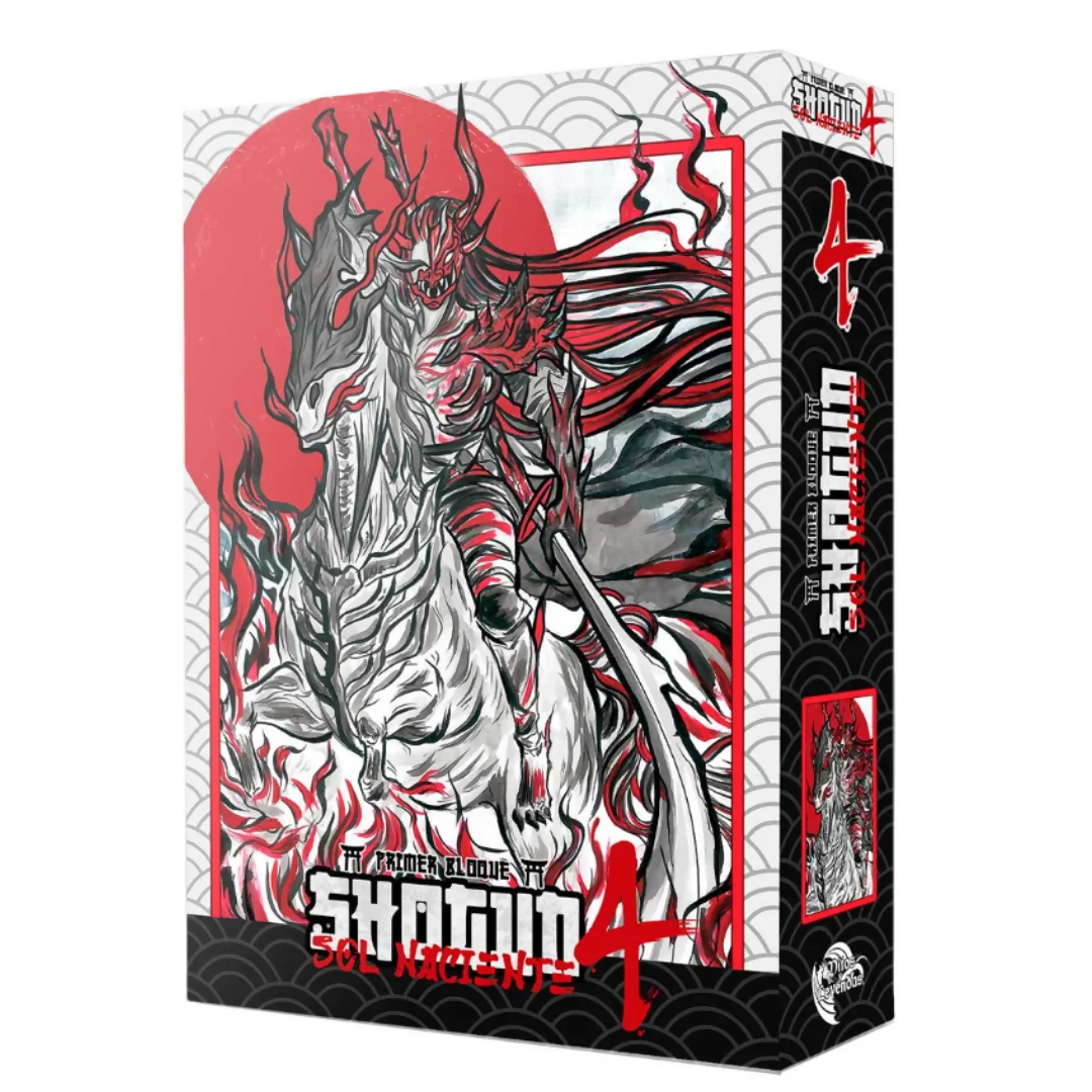Shogun 4: Sol Naciente reúne 17 cartas con arte alternativo del Primer Bloque Extendido de Mitos y Leyendas, inspiradas en el arte tradicional japonés, junto a 8 sobres de Dominios de Ra Aniversario. Es una edición ideal para ampliar tu colección o dar un estilo samurái único a tus mazos.